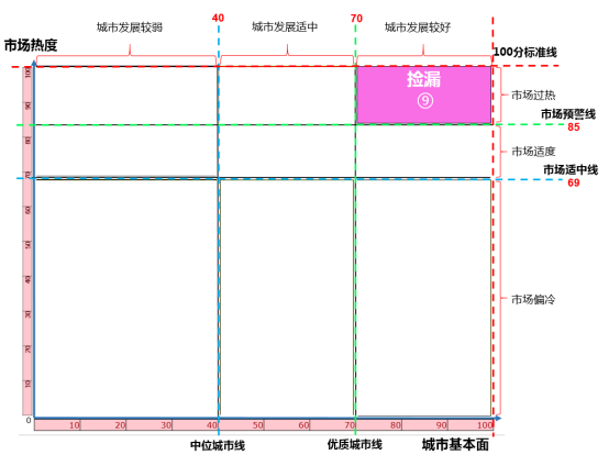 九宫格七至九区均处在城市发展较好区,根据市场热度从低到高重新定义九宫格七至九区策略。
