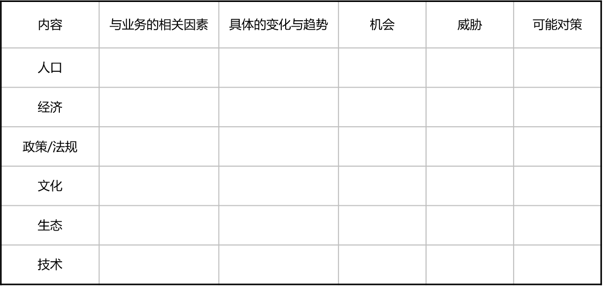 比如关于技术这一要素,企业的分析时,可能会考虑: