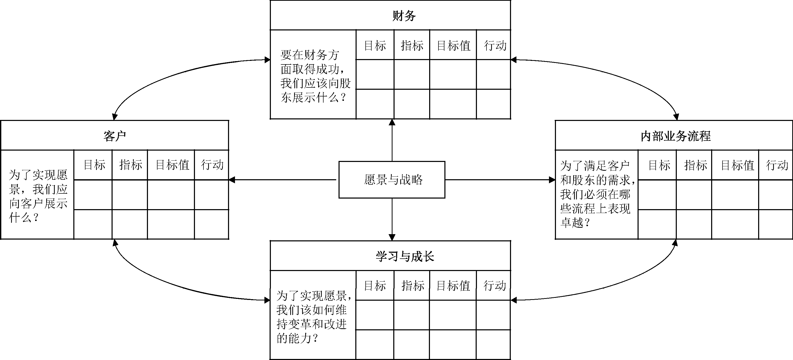 学习与成长维度。学习与成长的三个主要来源为人力、系统和组织程序。这个维度主要解决“我们能否不断提高能力并创造价值”的问题,即是否具备持续为客户提供价值的能力,典型的衡量指标有员工敬业度、劳动效率、信息系统覆盖率、系统响应时间、业务连续性、继任者计划等。