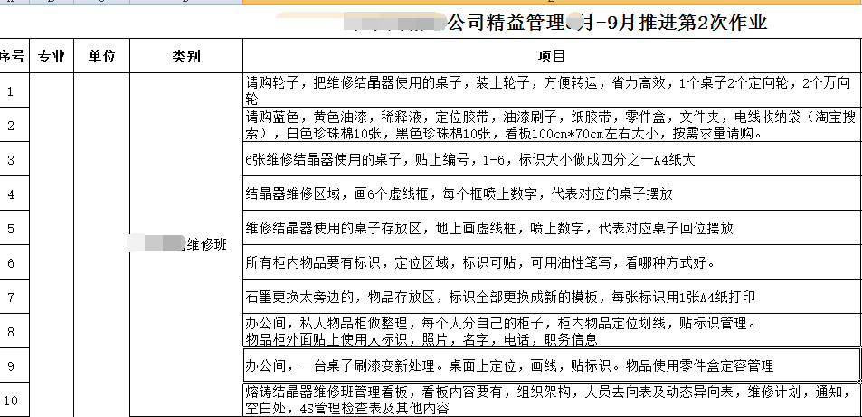 上表是安排的项目作业,下次出访检查、指导、横展、总结。