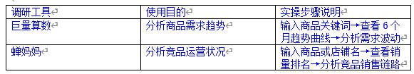 用于调研同行店铺的销量、定价、达人带货情况、客户评价,确认商品是否适合新店铺。