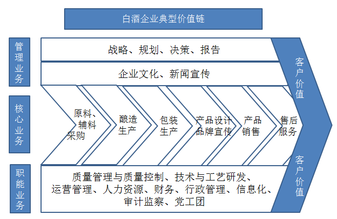 在具体实践中,我们使用了科尔尼价值链模型,将企业的业务分为管理业务(包括规划、计划、经营层向投资人的报告)、核心业务(技术研发、原材料加工、生产过程、销售、售后服务)、职能业务(人力资源、后勤性质等)三种类型。
