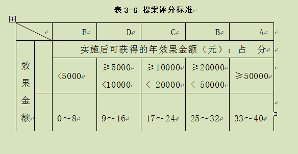如前所述,改善提案活动是一种通过标准化和制度化的评价、奖励措施来推动的改善活动。因此,开展这项活动最重要的工作就是建立一套提案等级评价标准及与之相对应的奖励制度。