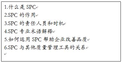 1.1 SPC即统计过程控制,控制对象为产品特性或过程特性,通过数据识别过程异常。