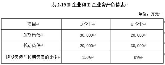 以D企业和E企业为例,两家企业的资产负债表数据如2-19表所示: