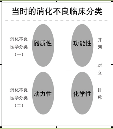 我们研究发现,当时临床医学上的对消化不良的分类有两种方法,如图5-5所示。