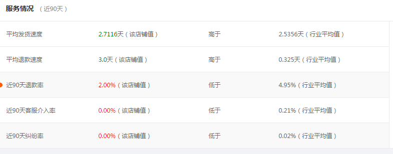 (3)图片因素及商家BSR因素。图片是一个小的详情页,五个主图的顺序排列决定顾客都要进入详情里面再下单。一般五个主图的排列顺序为:第一张是产品卖点图,有卖点才能让客户停留更长时间;第二张是材质解析,每个版块一个材质放大图;第三张是主图:质检报告,任何证据都抵不过一份质检报告有力,客户信任度在此刻立马增强;第四张图是优惠信息,很多客户觉得产品不错,价格是否能优惠呢?第五张图是白底图,这是为了讨好搜索引擎的,方便系统收录。BSR分几块:一是平均发货速度,最好是高于同行,越高越好;二是响应速度,正常来说一个客服的响应速度是8~15秒;三是货物描述,货物描述高于同行比较好。这构成了BSR的几大要素(如图10-2所示),但我们也要看看这几个标准:平均退款速度、近90天退款率、近90天客服介入率、近90天纠纷率等(如图10-3所示)。