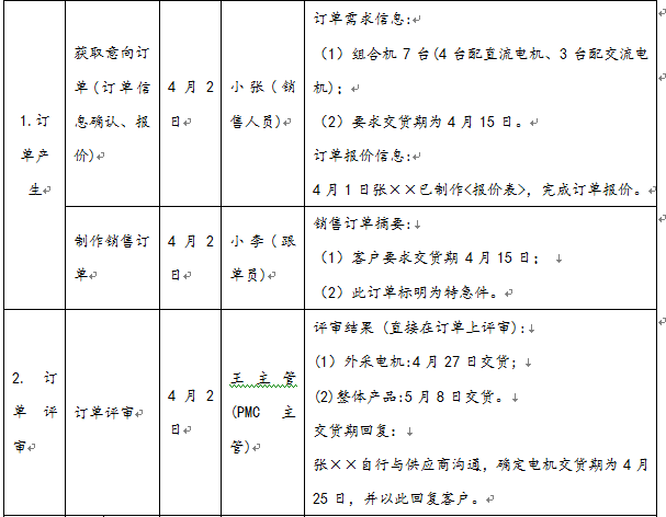 A公司总经理安排企管部以此事为契机,开展对订单流程的全过程梳理,不查不知道,一查真相惊人,整个订单的运行都处于完全的不确定状态中。具体如表2-1所示。
