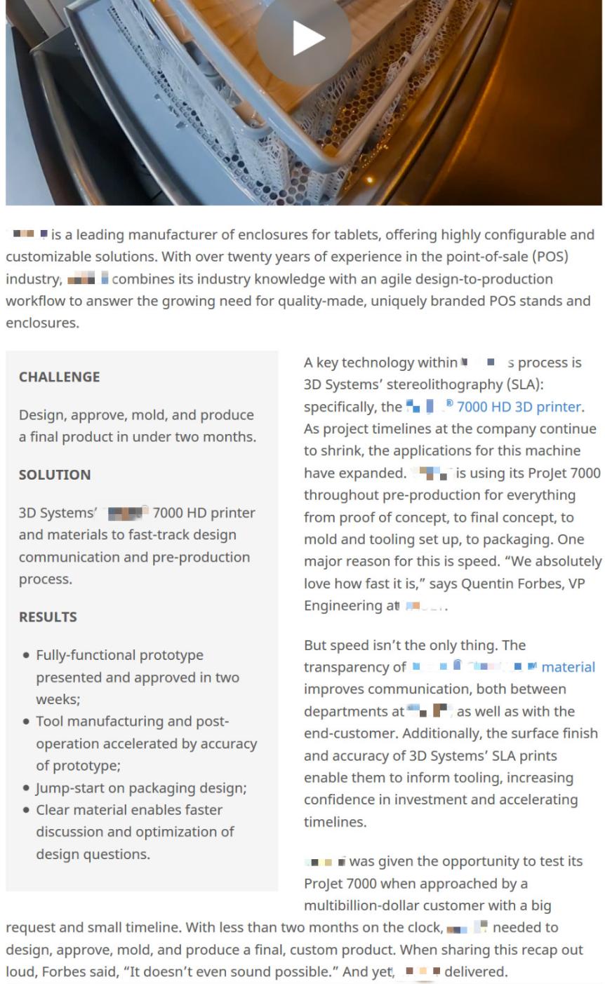 图4-19某3D打印公司网站的客户案例参考2(仅部分截图)