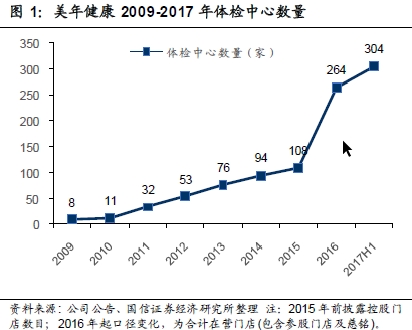 同时,美年在2016年收购了慈铭体检,体检中心数量暴增至264家。如图6-19所示。