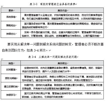 管理者的段位,不在于其能否迅速扑灭眼前的“火焰”,而在于其能否构建起一套“预防火灾”发生的体系。高效的管理者应当具备从解决一个问题跃升至解决一类问题的能力。这要求他们具备表 3-3 中的素养。