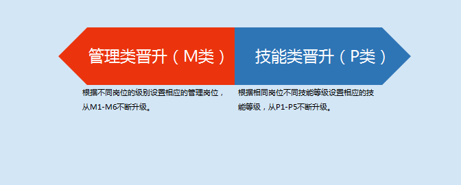 关于晋升:按照管理类(M类)和技术类(P类)设置不同级别的晋升渠道,针对管理类(M类)晋升设置:M1-M6六个等级,针对技术类(P类)晋升设置:P1-P5五个等级,针对不同等级设置不同的职位和职称,对应相应的福利和薪资水平。