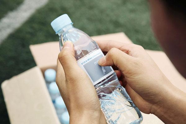 阿尔山矿泉水在运动场景中通过环保手写瓶构建诉求,在运动场景中可挖掘到运动过程中、中场休息、观众呐喊、受伤替换等更多细分场景。阿尔山矿泉水则抓住了休息时喝水的场景,打造出“环保手写瓶”——在集体运动中,往往很难找回运动场上自己喝过的那瓶水,只能重新开一瓶,造成浪费。于是,阿尔山在原有瓶贴的基础上,增加刮刮卡的特殊油墨涂层,供消费者在瓶身上留下自己的专属标志。这不仅击中消费者的需求,还提供了参与互动的空间。如图4-1所示。