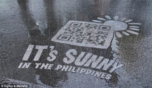 宿务航空在生活场景中找到痛点,建立“雨代码”的诉求。人的部分需求要在特定的场景下才会被激发,找到这些场景才能找到诉求点。中国香港的季风气候雨多晴少,让人头疼和情绪低落。宿务航空抓住“下雨”这个场景,吸引大家到阳光明媚的地方旅游。“雨代码”,即利用防水喷漆在大街上喷二维码广告,平时隐形,一下雨就冒出来诱惑人——下雨太烦人?快扫二维码,来菲律宾跟阳光玩游戏!如图4-2所示。