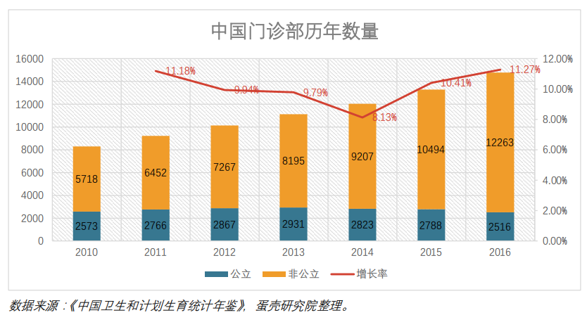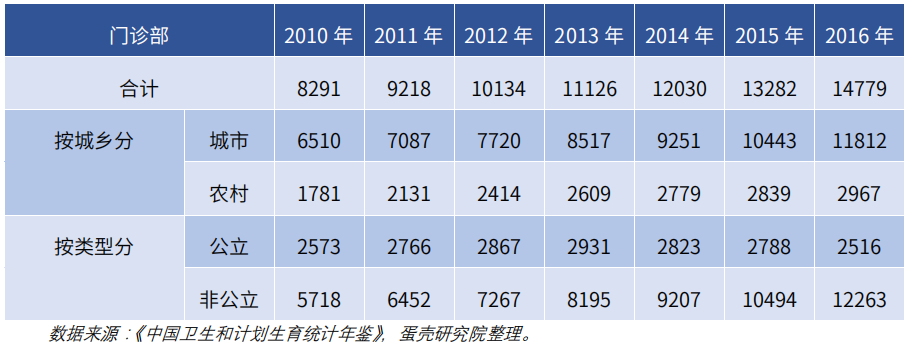 根据卫健委公布的公开数据,自2009年新医改以来,诊所数量以每年6000~7000家的数量在快速增长(表1-2)。