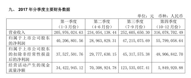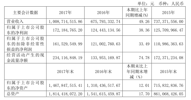 第一步,肯定是看概括及利润表。因为这是期间数,好的利润表是吸引笔者的第一步,不好的就此打住。2017年实现收入10亿元,增速49%+,扣非归母净利润1.61亿元,增速33%+,如表1-39所示。