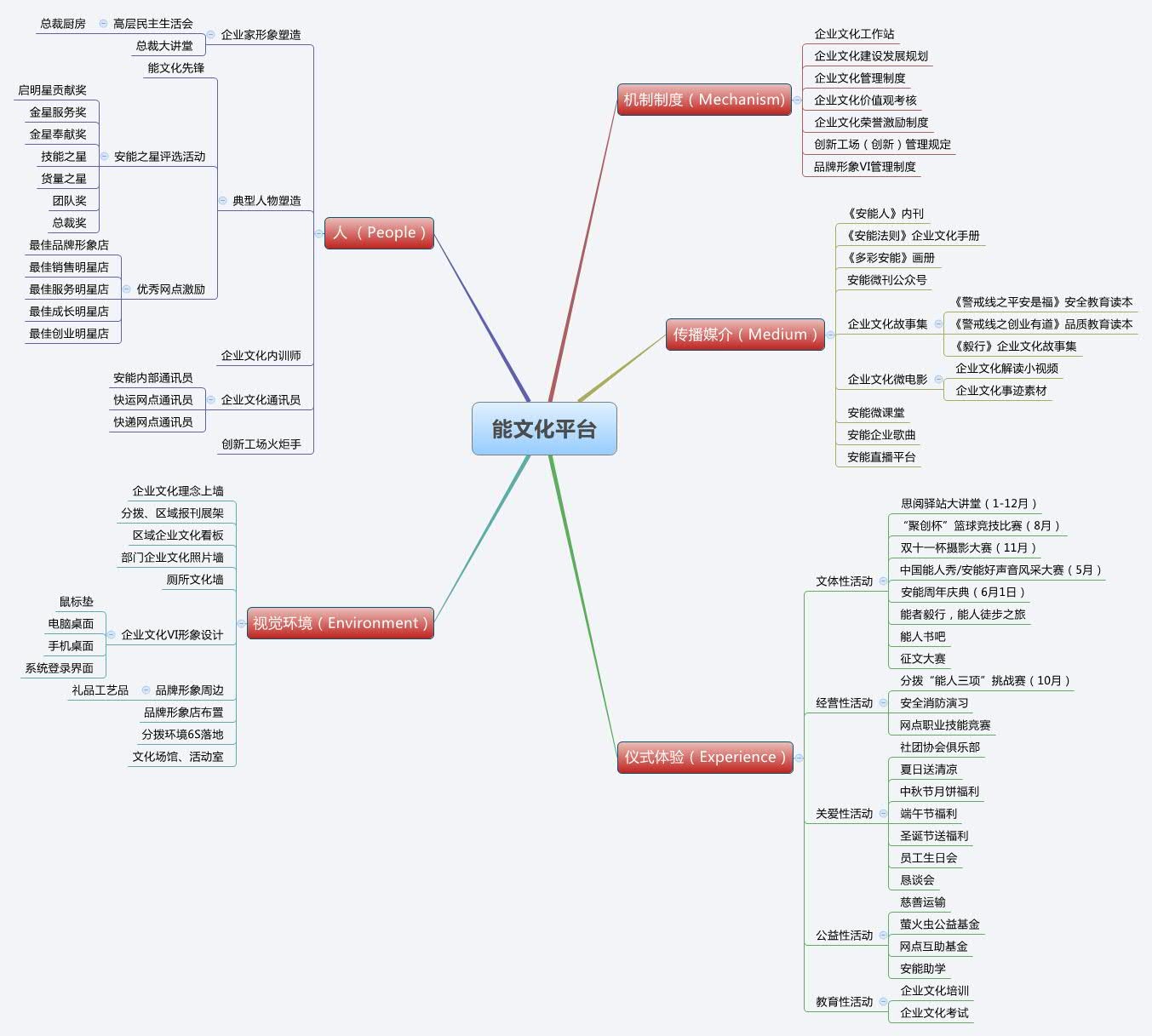 安能物流企业文化建设中实施的能动力工程就是文化落地的具体实践,采用P-MEME落地模式,这是一个立体式的企业文化建设图谱,是对安能企业文化规划落地的总体方式进行归纳总结,未来所有文化落地方式都可以在这个体系中找到脉络。
