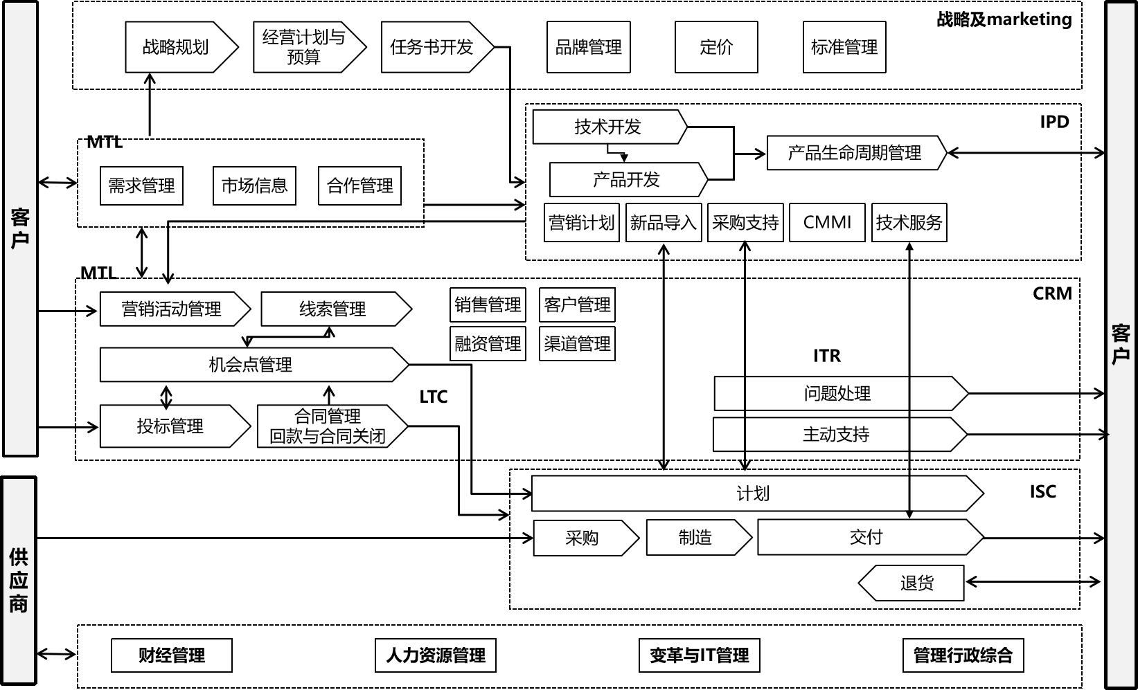 流程总览图规划建议由外部咨询顾问提供一个建议稿,这样做有两个好处:一是外部顾问见多识广,能够提供合适的标杆架构参考,能够设计出更适合的架构;二是外部顾问对于0级架构的理解更到位,更容易与公司高层沟通,引导并说服大家形成一个相对合理的规划。