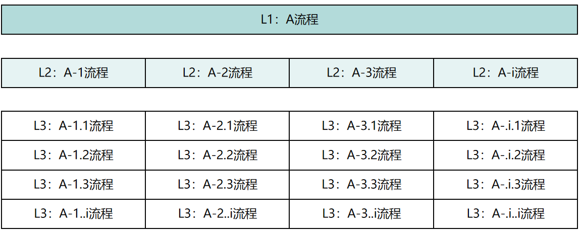 通常组织各一级部门进行盘点,再作汇总整合:去重、拉通合并,形成公司现状流程清单。