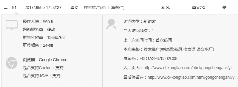 上面那个9月5号的数据没有几天,所以在百度统计里的【实时访客】中还能看到,如图7-25所示。