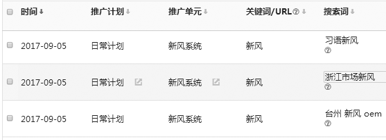 但是在9月5号的【搜索词报告】里却看不到搜索词“遵义水厂”,比对当天关键词“新风”数据后发现,这个搜索词也被修正为“浙江市场新风”,如图7-26所示。