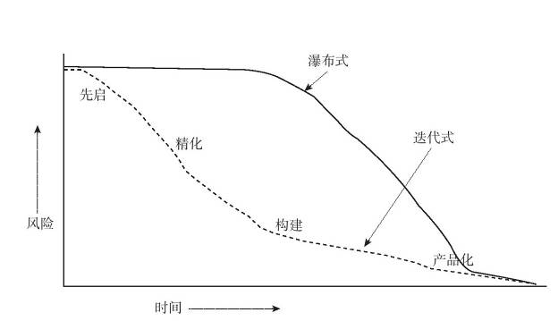 迭代模型和瀑布模型的最大的差别在于风险的暴露时间上,不管开发团队经验有多丰富,都很难预知所有的风险。瀑布模型一般有许多风险直到已准备集成系统时才被发现。而迭代模型能在生命周期中尽早发现和避免风险,计划会更趋精确,如图4-2所示。