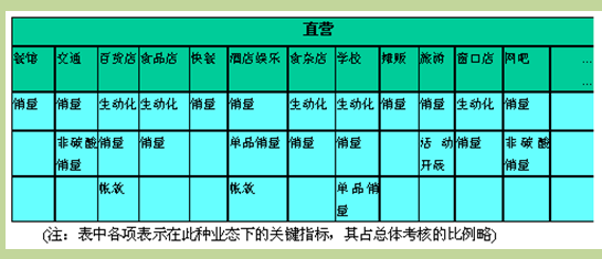 可口可乐公司的三个合同奖励关键指标为生动化考核、销量返扣和账款考核(在一定账期内未收回的货款,并非赊账经营)。这三个指标在不同渠道的重要程度和要求都是不同的。 如表2-2所示。