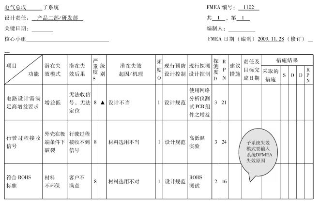 有些产品比较复杂,可能有一级子系统,二级子系统,三级子系统,这个也要分别做DFMEA,具体要求视产品的具体情况而定。