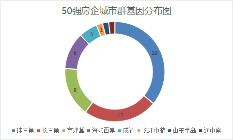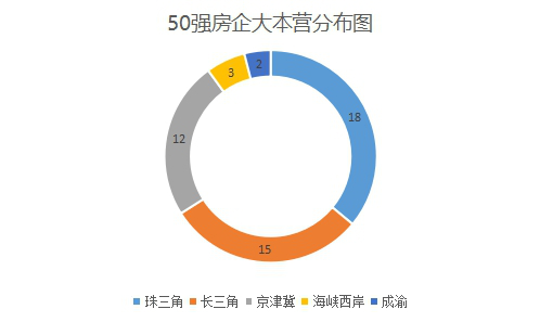 我们对50强房企目前的总部所在城市群进行整理分析,得出下图: