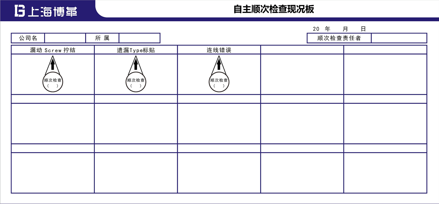 监督者在设定各工位的顺序检查项目后,待定负责人和作业人员,并制定自主顺次检查要点。