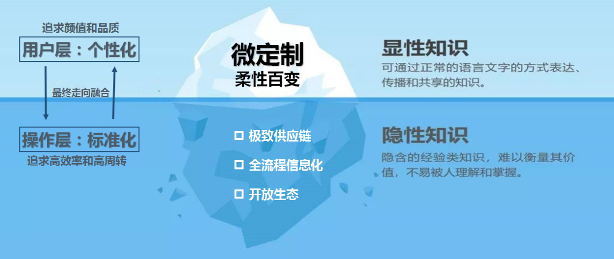 橙家推出的微定制的冰山理论,背后代表着极致供应链、全流程信息化、开放生态。
