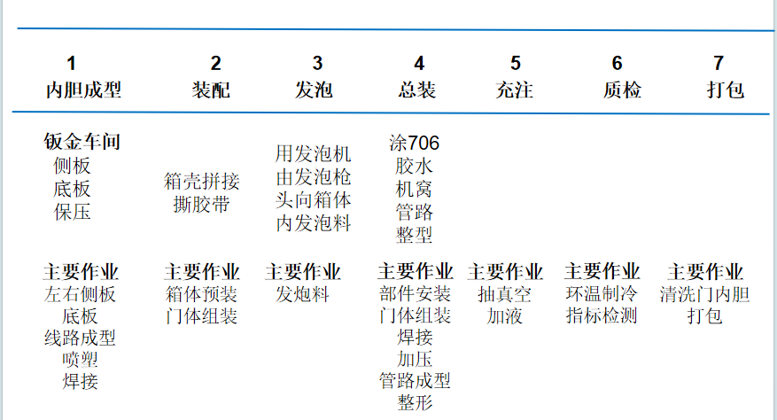 (2)了解冰箱生产的生产工序及划分关键作业。