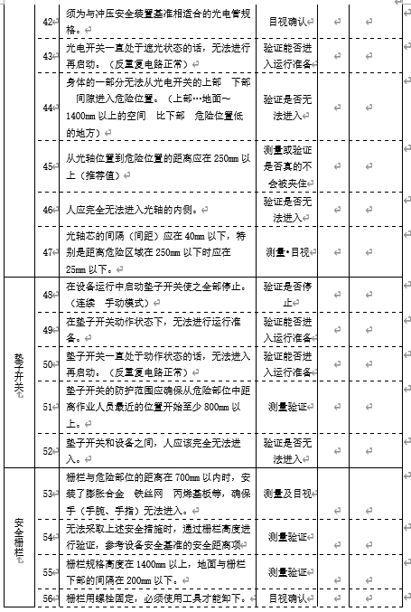 ​ 对于不能安装防护装置部位,可考虑加装安全感应光栅,只要身体部位将感应光栅进行遮蔽(代表有身体部位进入到了运转区域),则设备立即停止运转或运动;