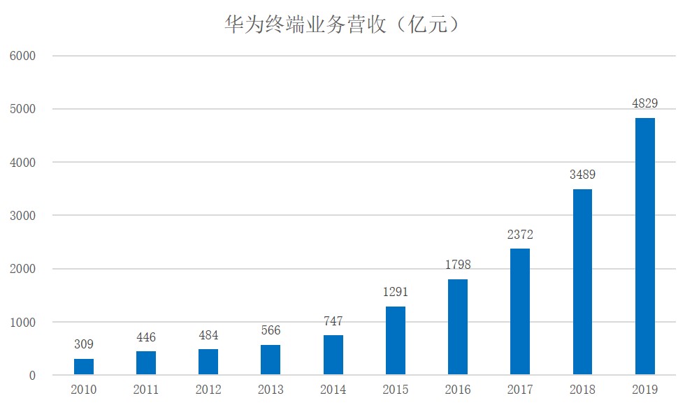 从2012年开始转型到2013年GTM开始正式试点操盘,再到2016年IPMS进入实用阶段,华为终端(CBG,也称为华为消费者业务)从2B向2C的流程变革看似风平浪静,作为亲历者则深知其中的艰难。当然,有付出才有回报,从2012年单款手机100万的销量到2019年破2000万的销量,华为终端的2C变革取得了实质性的成果。反映到具体的业绩表现上,也是非常突出的,如下图所示:
