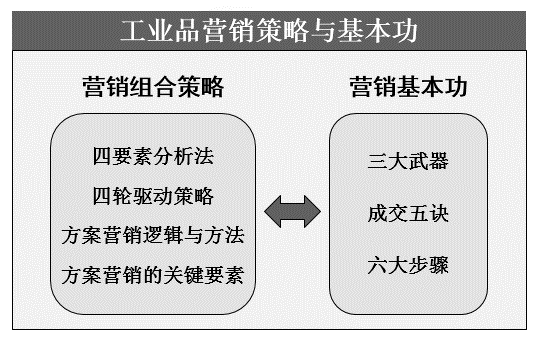工业品营销策略,给忙忙碌碌的营销大军插上思考的翅膀。运用三者分析对营销信息深度加工后,从合作机会、关系资源、竞争手段、策略检核四个要素深入分析,企业方可制定信任导向的营销组合策略。四轮驱动就是要具体打开风险如何化解、价值如何显现、关系如何构建、服务如何展开四个问号,并形成一套策略组合。三者分析、四要素分析、四轮驱动等营销工具,有助于训练营销人员的策略性思考能力,提高公司营销团队的战斗力。SC公司以独特的产品优势全盘掌控市场,在内部人员另立山头、用户开始流失、营销团队茫然失措的紧急状况下,运用策略制定的工具,及时导入四轮驱动策略,维护用户、巩固市场。类似事件层出不穷,我们从SC公司的实例中可窥一斑。