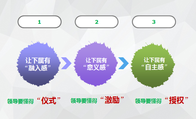 让新生代拥有“融入感”,管理者要懂得“仪式”;让新生代拥有“意义感”,管理者要懂得“激励”;让新生代拥有“自主感”,管理者要懂得“授权”。
