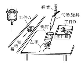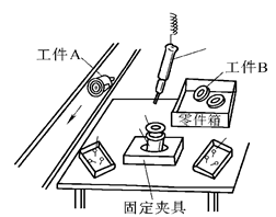 轻松动作 | 1.努力使动作不受限制 | 使操作高度为最合适的高度 | 1.为限制一定的运动路线而使夹具或导向 |