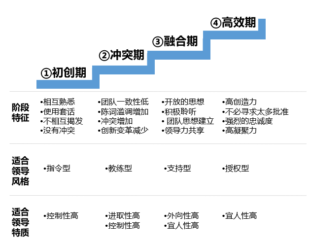 (1)组织目前的发展阶段是什么?不同发展成熟度的组织对关键岗位,如领导的要求是不同的。如图5-6所示。