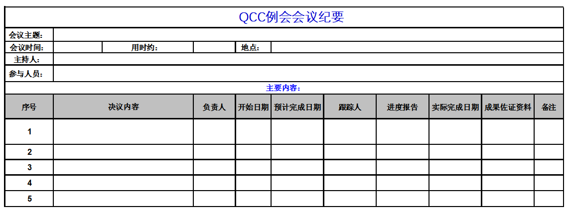 最后,提供大家一些表单(表2-15),希望对初步推行QCC小组的学者有所帮助。