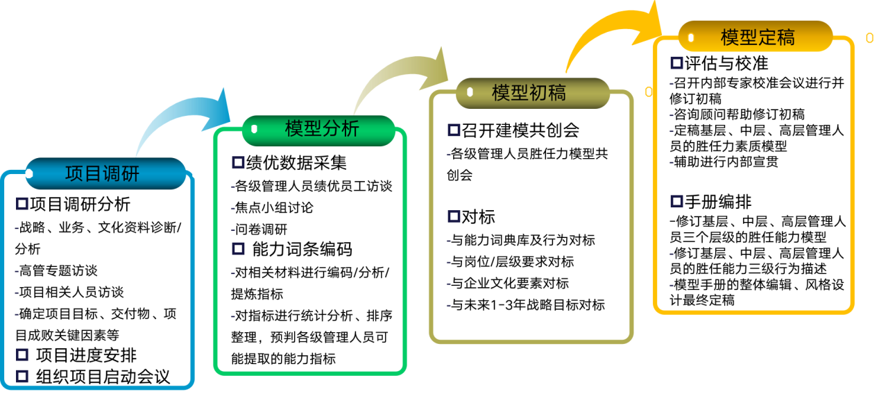 胜任力建模的实施流程总共分四步: