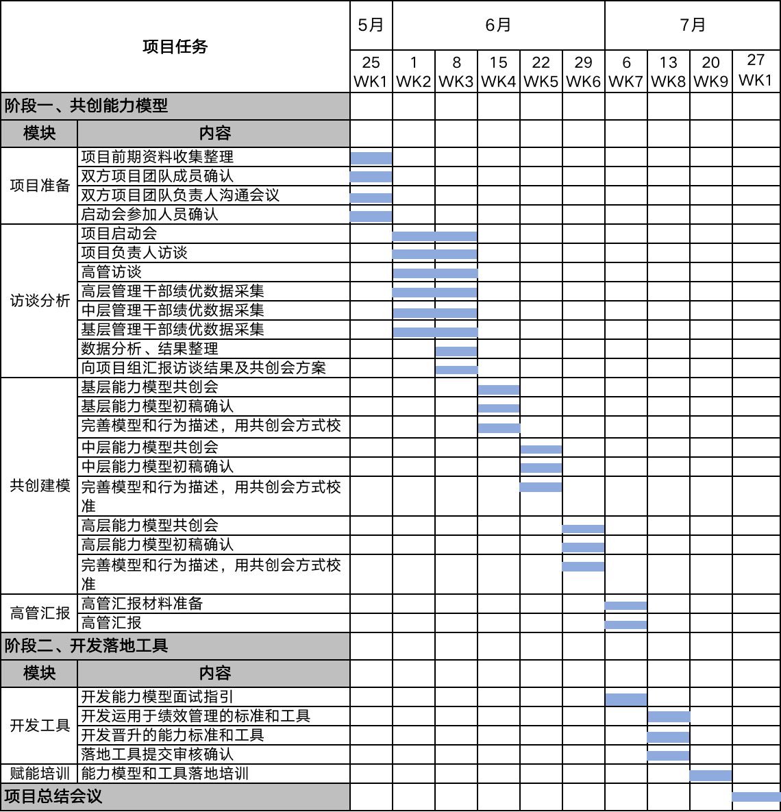表4-1 某公司胜任力模型构建的项目进度表