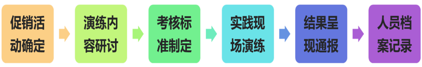 实战演练前需要根据促销活动内容,内部拟定核心内容,划定标准,然后在终端实战演练。