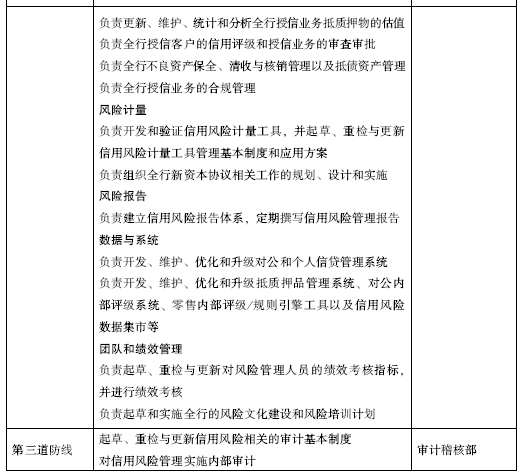 以渣打银行经典的“三道防线”设置为例,其各部分功能如下。