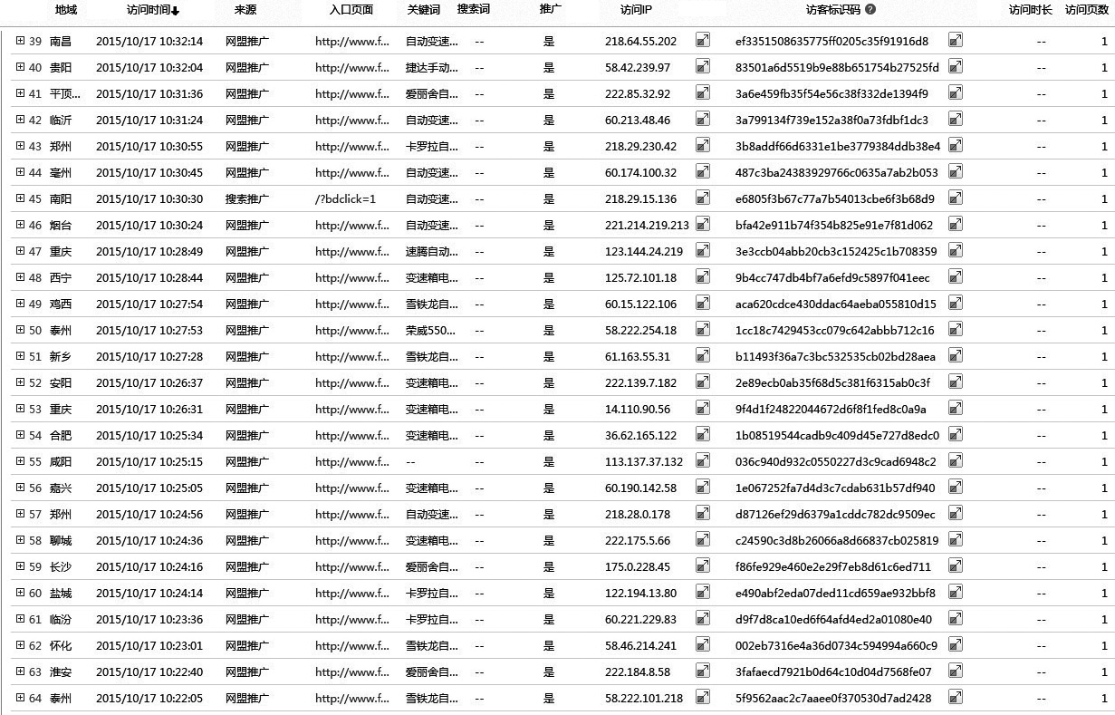 图3-6 一家变速箱维修企业网站在2015年10月17日10点半前后的网盟流量数据