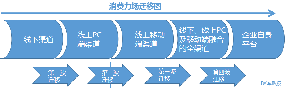 在消费力场已经来到第三波大迁移(如图1-1所示,作者注:我的《从趋势到行动:未来十年商业新生态》一书首次提出“消费力场”,2015年,中信出版社)的时候,生鲜电商的绝大多数企业,受限于重资产运营、履约成本高、损耗大、毛利率比较低,以及模式得不到有效突破下的伪需求等老大难问题,仍然处在烧钱不赚钱的初始阶段。与此相对应的是,在线上商品零售额早就突破社会消费品零售总额10%的占比并大踏步向20%迈进的时候,线上生鲜的渗透率仍然维持在7%左右的个位数。