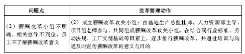 :针对这些问题,项目组推出的变革动作是:根据更新后的组织架构,岗位分成管理类、技能类、行政类三大类。将参与计划、组织、领导、控制的职能岗位划为管理类,如各部门科长、班长以及部长。