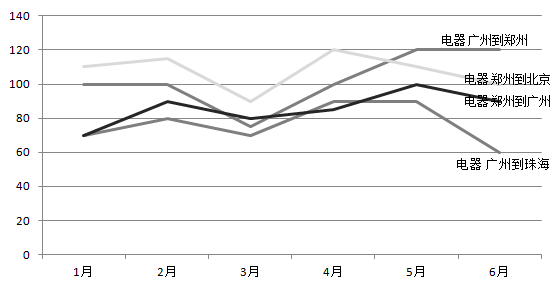 图6-13 各"货物类型+路由"上半年每月成本趋势折线图