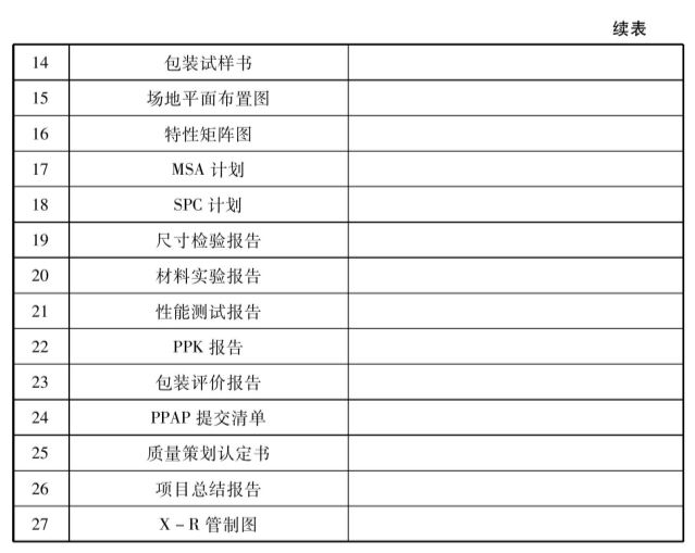 表6-1-6 APQP清单