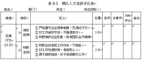 以下是我整理的梯队人才选拔评价表(见表 9-3)模板,供大家参考使用。