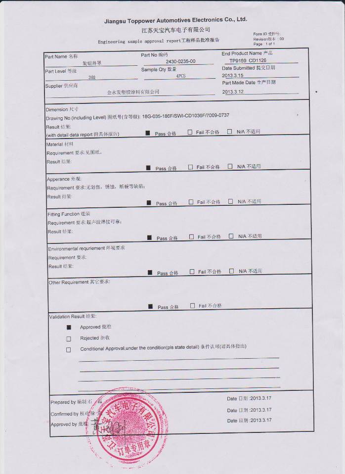 3.顾客工程批准(如果有,这里批试样批准书)